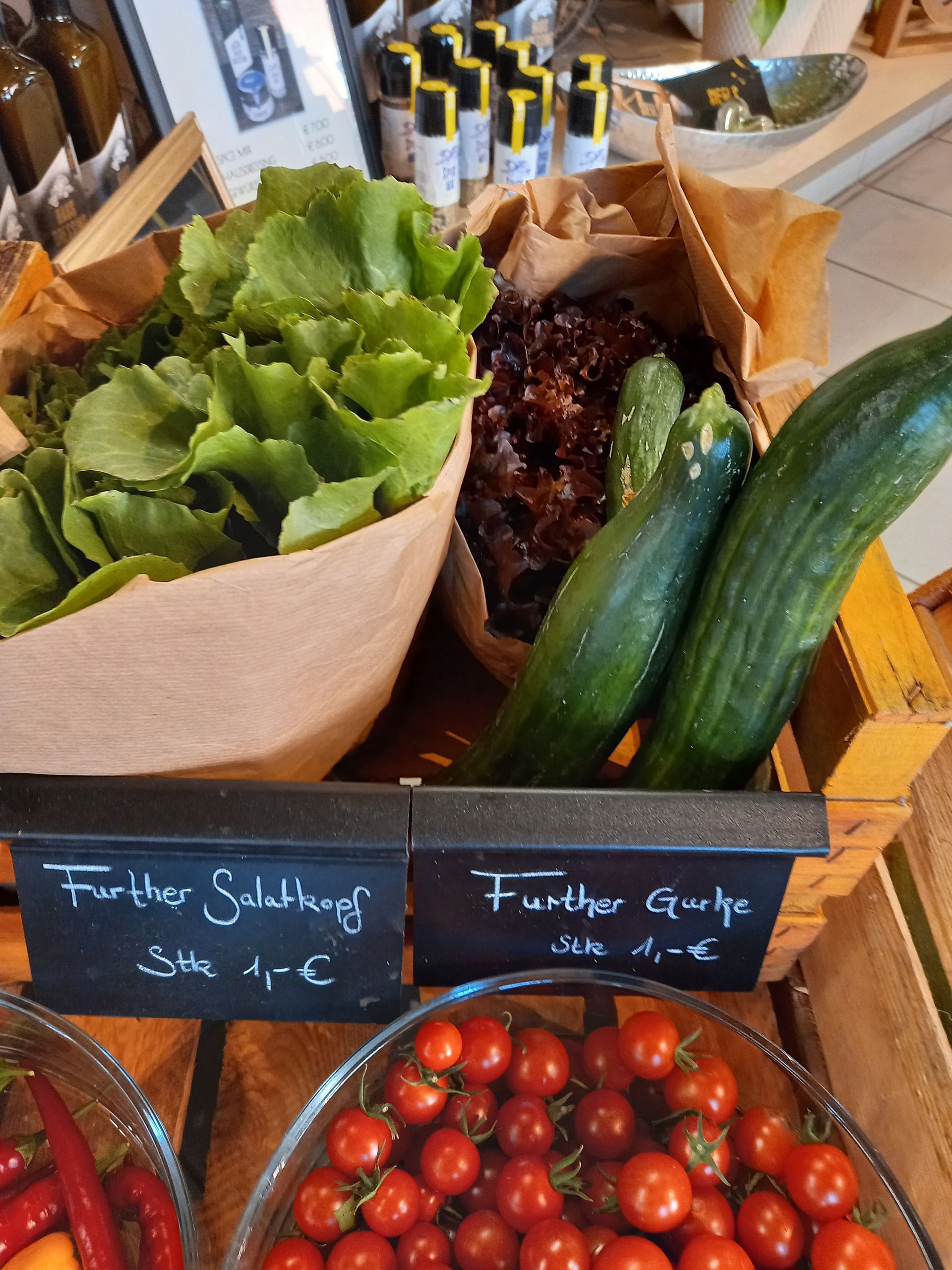 In den letzten Jahren haben wir auch unseren eigenen Gemüseanbau wieder ausgebaut. Erntefrische, unbehandelte Tomaten, Paprika, Salate, Zucchini, Gurken und vieles mehr gibt's bei uns in der Gärtnerei!