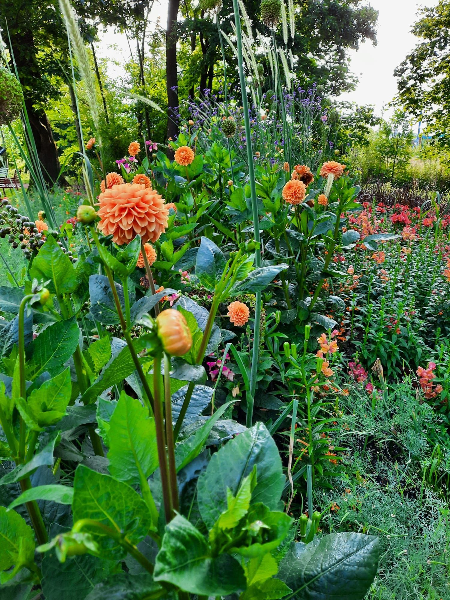Umgeben von bunten Sommerblumen bilden Pflanzen wie Digitalis oder Pennisetum das Rückgrat der Schuppen.